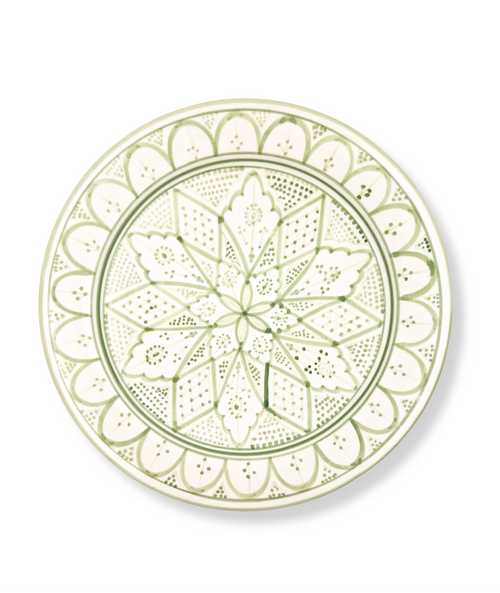 Fat 35 cm Kenza – stort marockanskt serveringsfat i handmålad keramik grön -