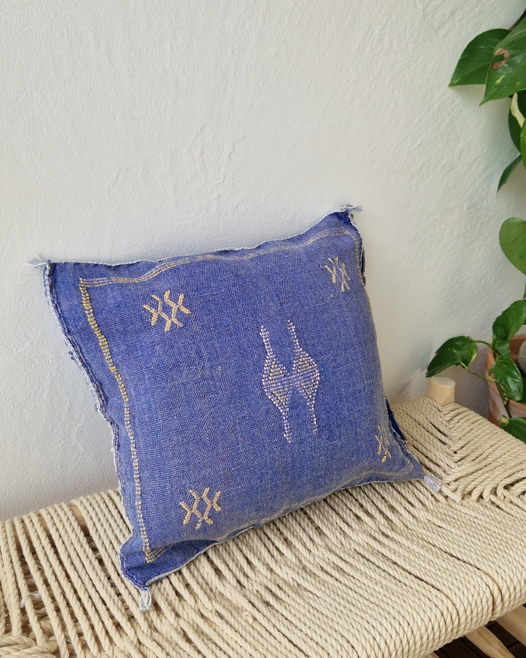 Ge ditt hem en unik och tidlös känsla med våra exklusiva, handgjorda kuddfodral i kaktussilke. Varje fodral är ett stycke autentiskt hantverk tillverkat av kaktusfibrer (även känt som Sabrasilke), vävt och broderat för hand av skickliga hantverkare i Marocko.